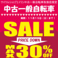 サイクルショップエイリン中古一般自転車取り扱い店限定!中古一般自転車SALE実施!! 2020年10月12日(月)~11月15日(日)まで 通常でもお買い得な「エイリン」の中古自転車が期間限定で、さらにお買... View Article