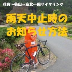 いよいよ明日に迫って参りました、花背~美山~京北一周サイクリング。 皆様準備は着々と進んでおられますでしょうか? 明日、天候やその他諸事情により中止とさせていただく場合の 中止決定時間とお知らせ方法についてお知らせ致しま... View Article