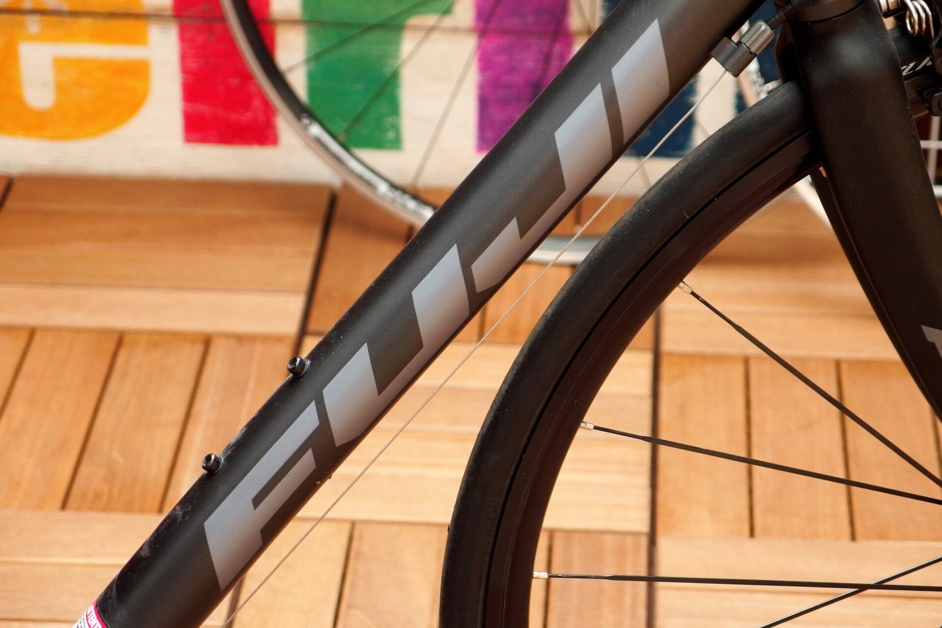 フレームの材質にはFUJIオリジナルのアルミ「A2-SLアルミ」を使用していて、シャキシャキした走行感があり、カスタムバテッド加工をしたチューブは軽量でありながら剛性が高く反応性の良いフレームです。