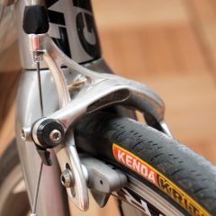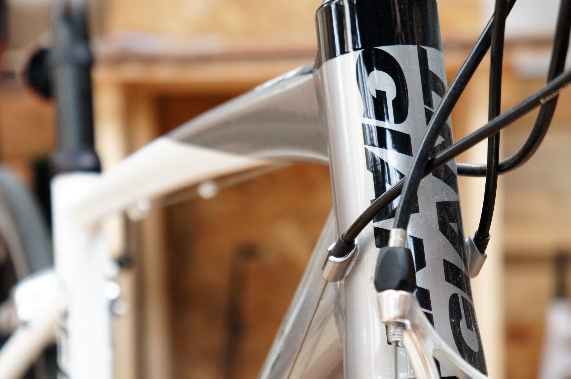 ダウンチューブもトップチューブ同様にヘッドチューブ側では、広めに溶接面を取り剛性とコントロール性能を強化。