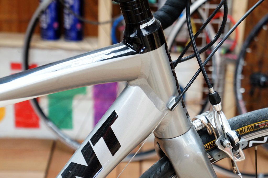 ヘッドチューブ上下での太さの違いを持たせる事で、ねじれ剛性やステアリング剛性を向上させ、安定したコーナリングが可能となっています。また、しっかりとトップチューブ・ダウンチューブが溶接されている事で剛性にも安心があります。