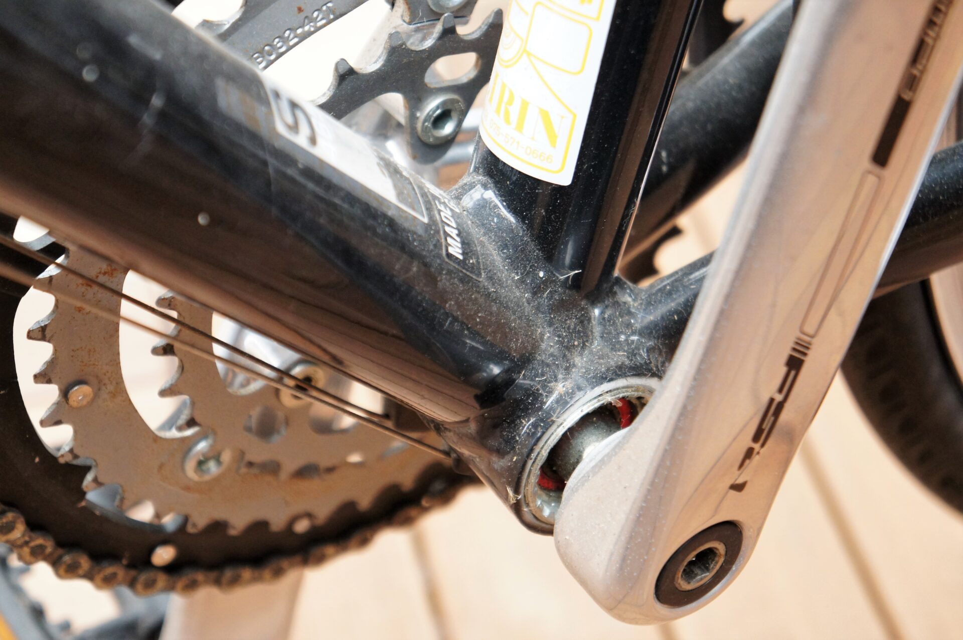 BB側に向かって、幅広に扁平。それにより、横へのしなりを軽減させると同時にペダリング時のトルク伝達ロスを軽減し、推進力に貢献された形状となっています。