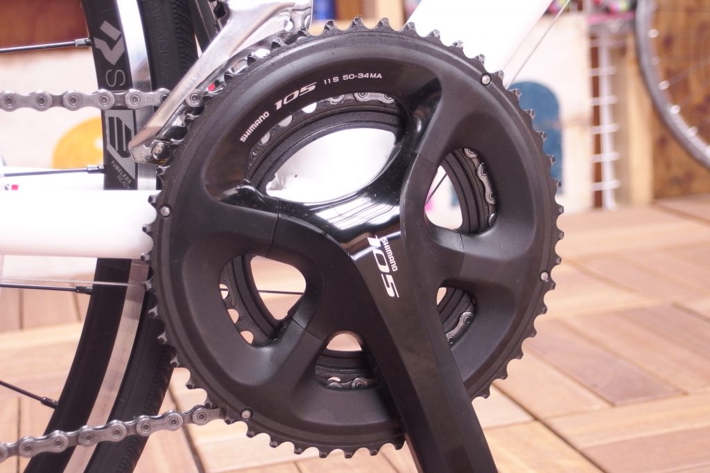 前後のディレーラーやSTIレバー、クランクはレースエントリーとも呼ばれる「105」を採用。