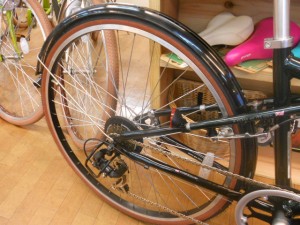 泥除けも標準装備、タイヤは大きめな700Cという企画を採用、遠くまで楽々です。
