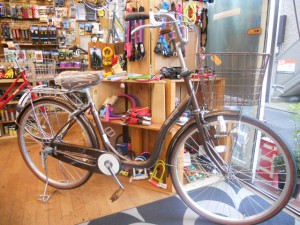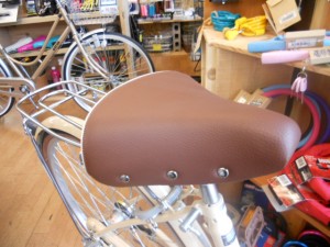 茶色の大きなカゴにふかふかサドルも付いていて至れり尽くせりであります。