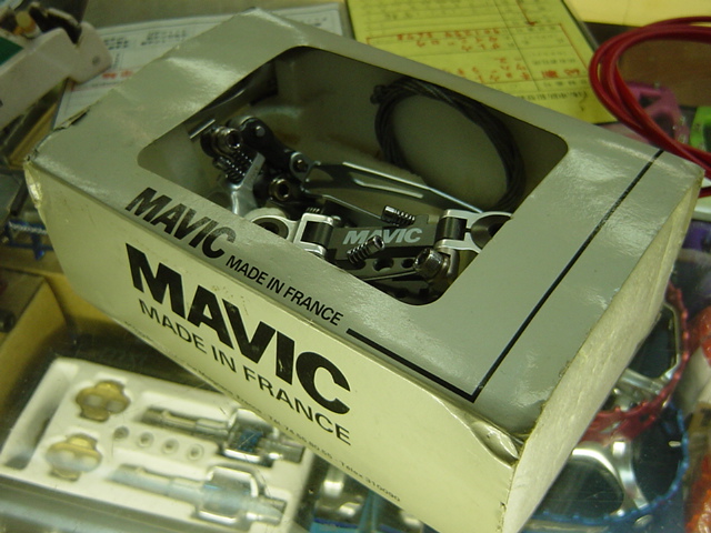 おそろしくカッコイイ!MAVICの初期型ディレーラーセット!変速はまあ入らないみたいですがルックスにうっとり。箱もかっこいいですわー。ちなみに3点セットでシフターはぉフランスのサンプレでした。