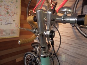 変速システムはハンドルステムについているWレバーで、フロント2速、リア8速の合計16段変速。