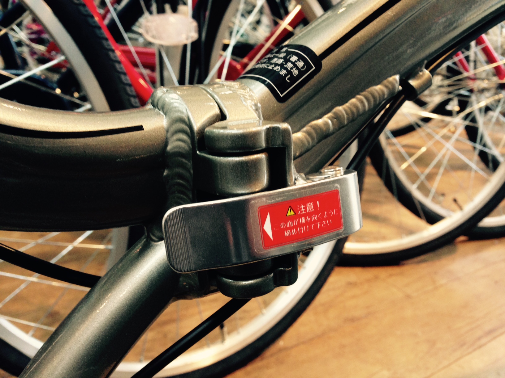 前後ブレーキとも一般車(いわゆるママチャリ)についているブレーキとは異なる、