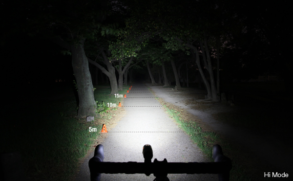 明るさも街灯が無い真っ暗な所での時速30~40kmの走行でもしっかりと視界を