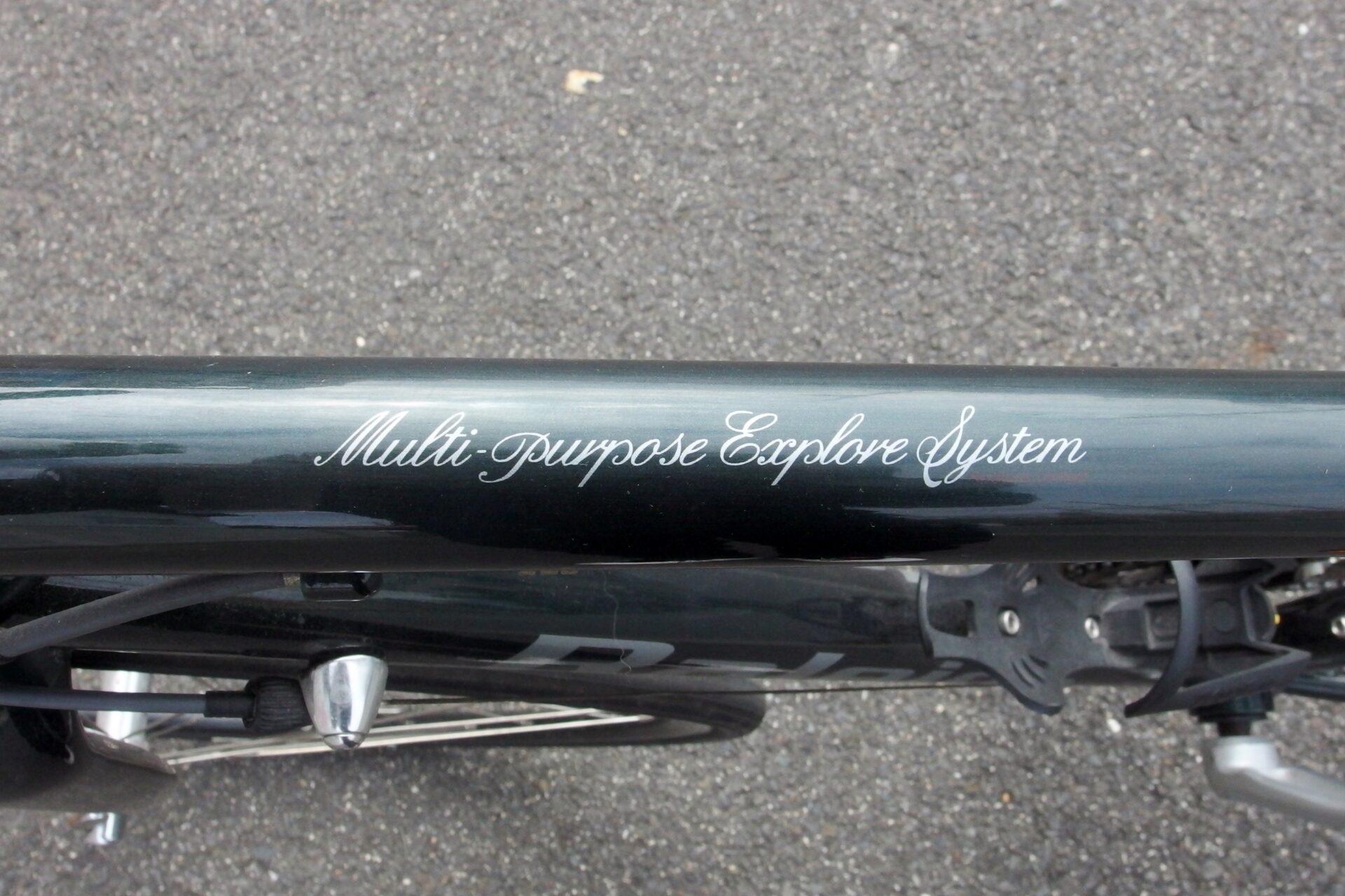 私は英語が苦手なので解読できないですが、「マルチパーパス性の愉しみへの想い」が込められた文言が記載されているそうです。簡単に言うと「いろいろな使い方があり、楽しめる自転車」という感じです!