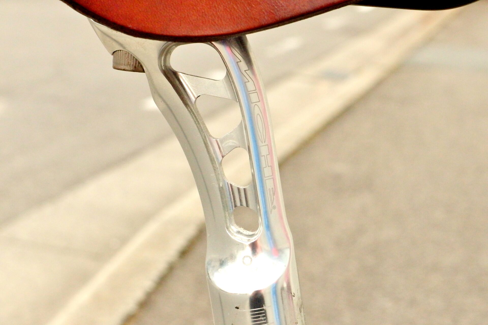 シートポストは肉貫のされたMICHEのアルミエアロシートポストが採用。