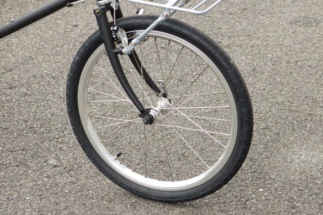タイヤは20×1.5と太めのタイヤを使用しており、エアボリュームが多く入るのでクッション性が高く、快適な乗り心地!