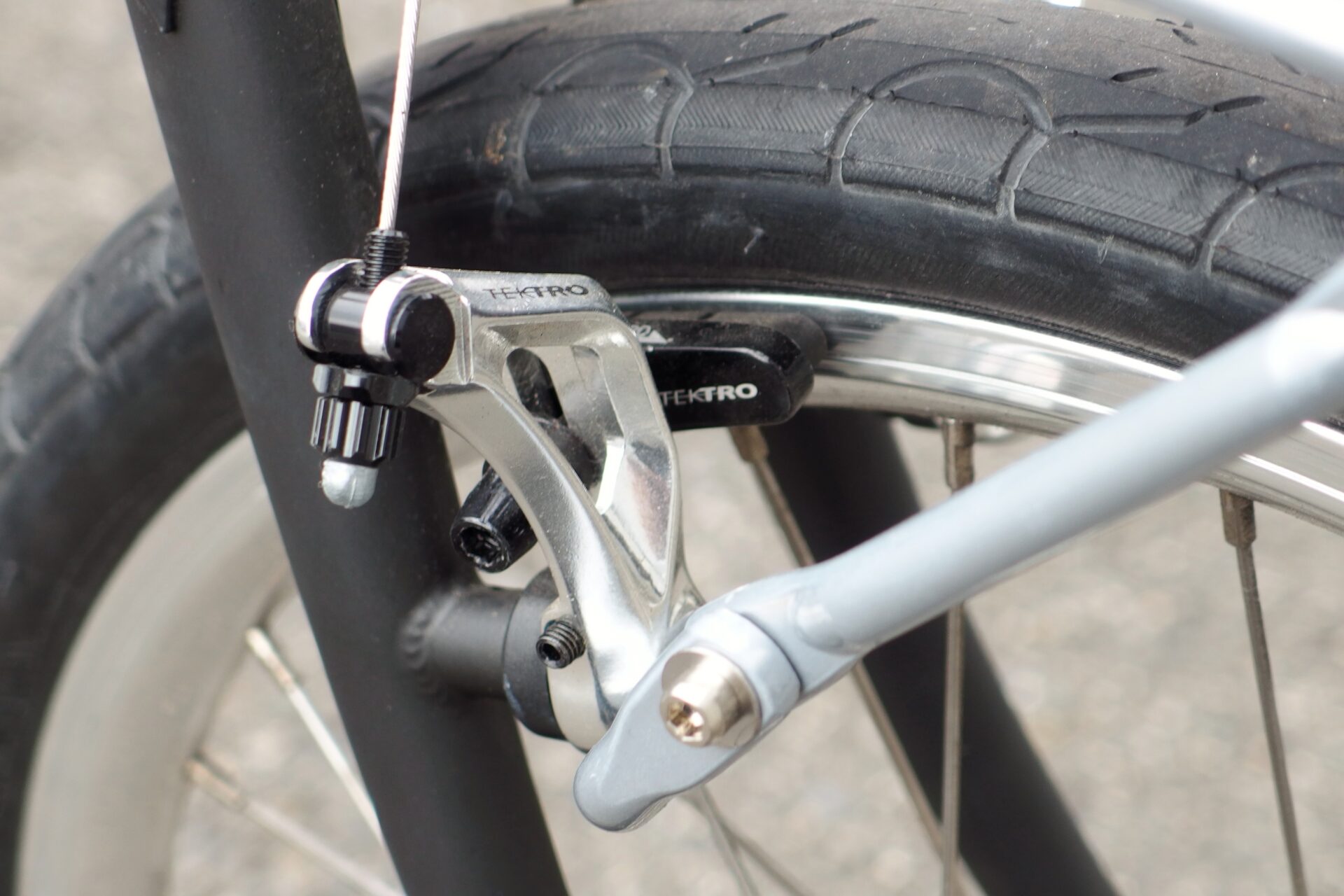 Vブレーキは制動力が高く少しの力でもきっちり利いてくれる特徴があります。