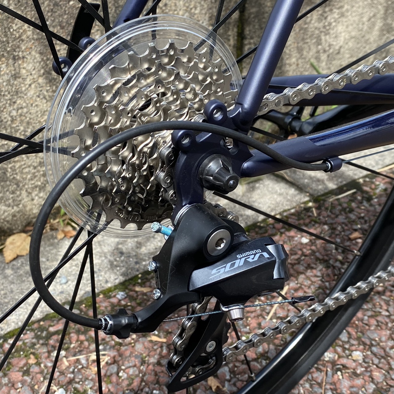 シマノソラはロードバイクコンポーネントの中では、下から2番目のグレードですが変速段数にこだわらなければ、抜群の耐久性と変速性能をもっています。