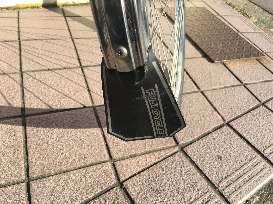 こちらの自転車にもしっかりステンレス素材のドロヨケが装着されています。