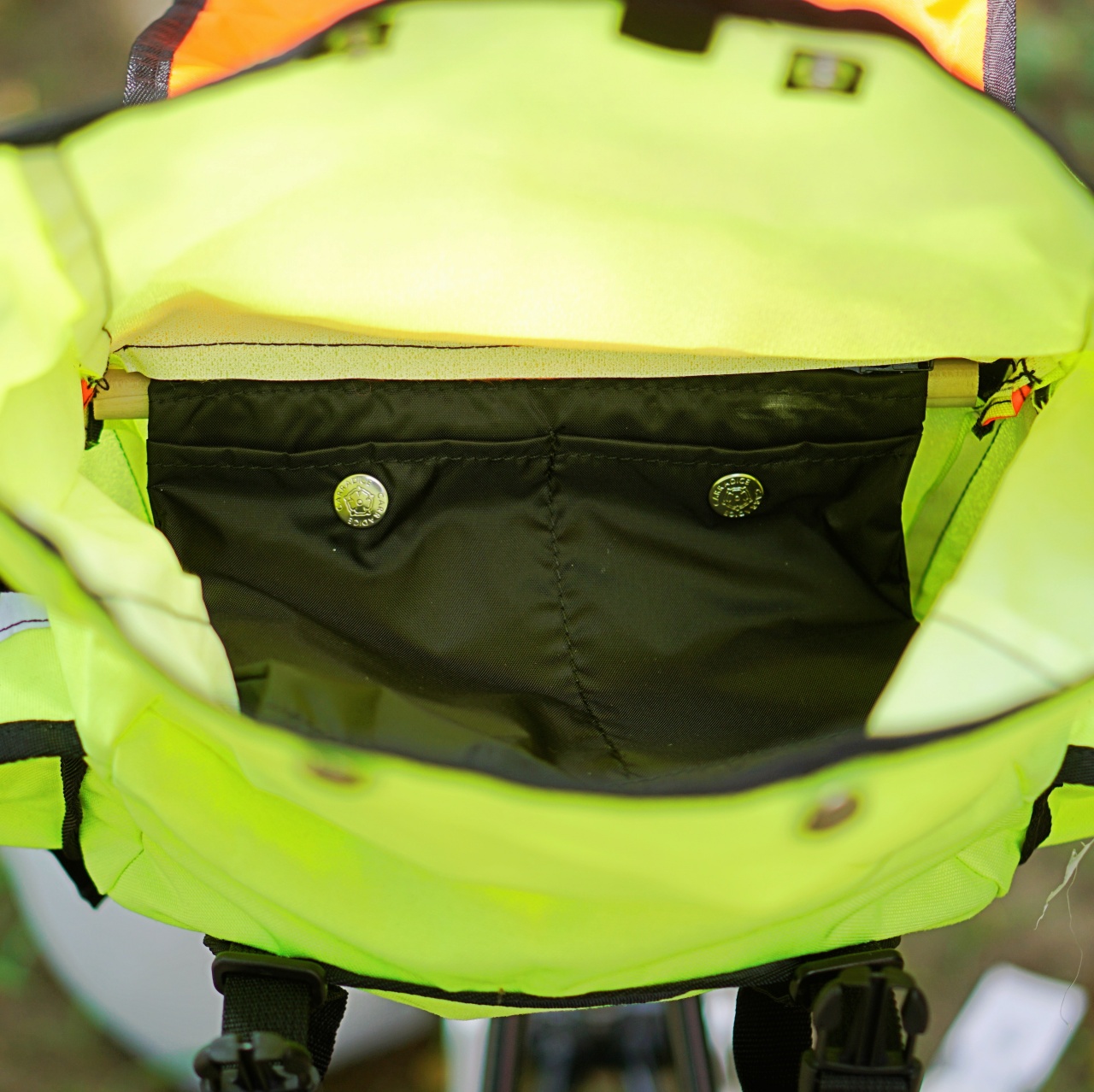 フラップ裏地には、オレンジ色の100%防水素材が備わっており、耐久性と悪天候からの保護性を確保しています。