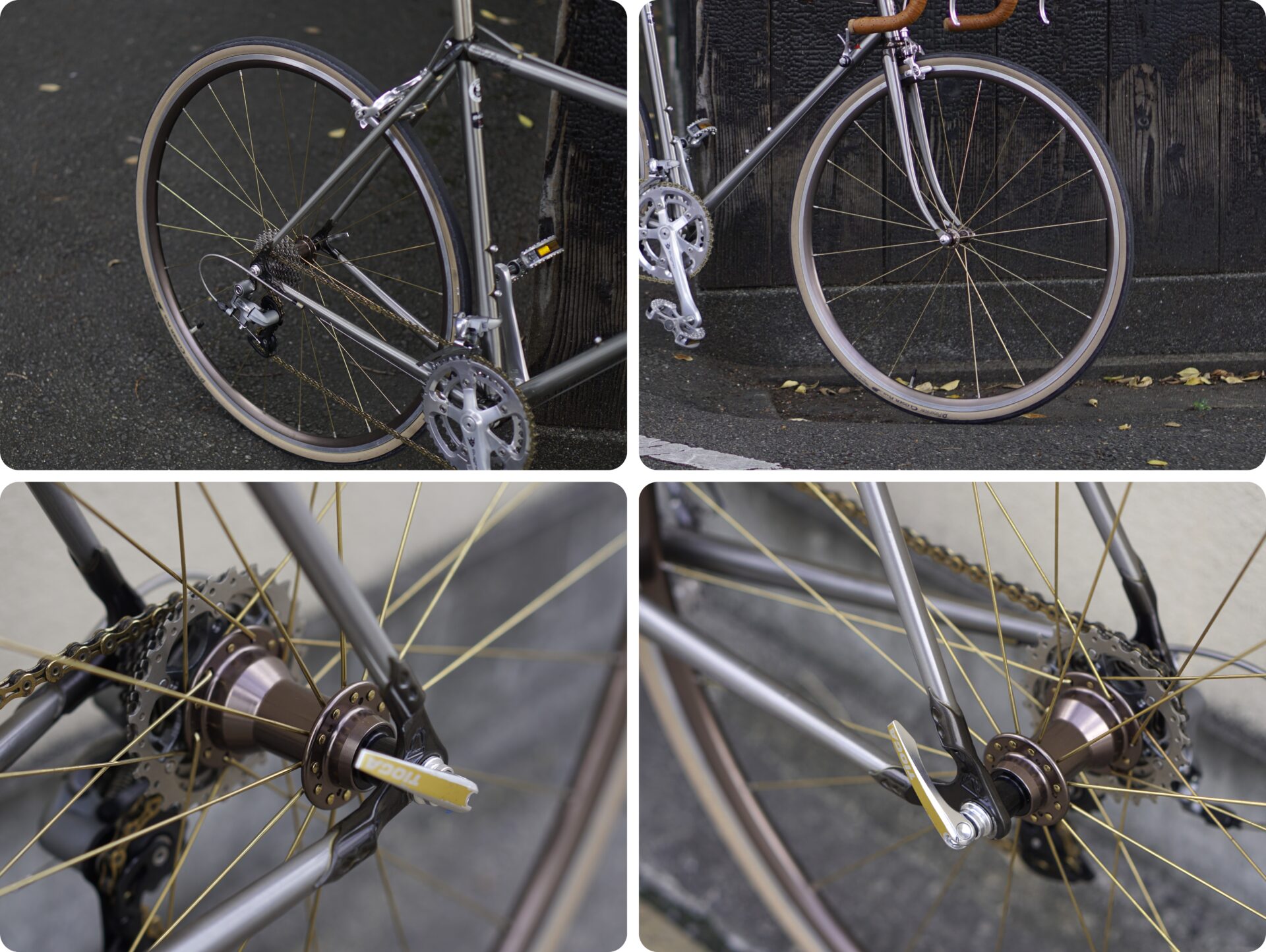 ブレーキキャリパーにはDIXNAのバンテージ。KMCのゴールドチェーンもフレームの雰囲気とぴったり!ととてもバランスの良いいやらしくない仕様ですね!
