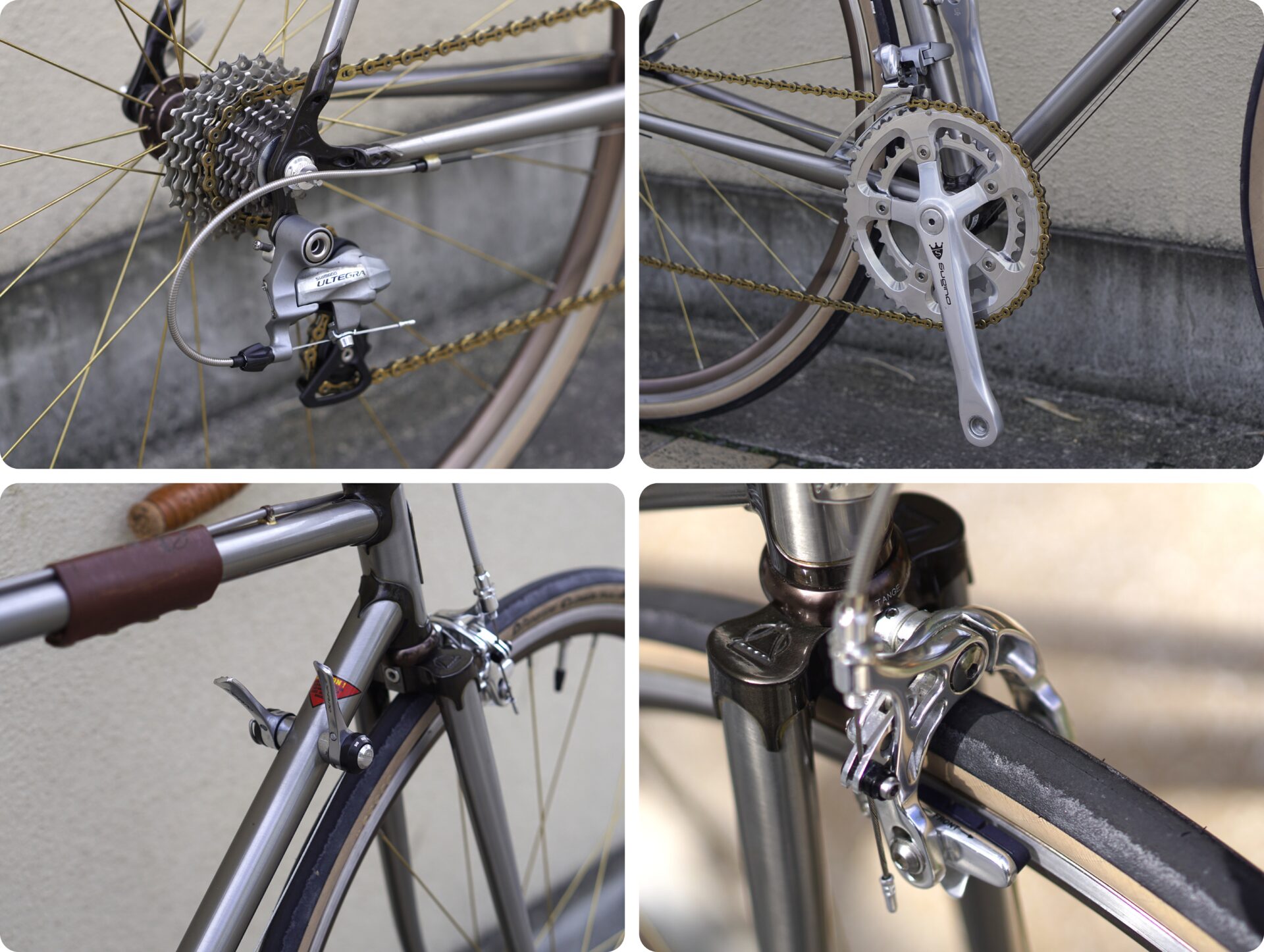 変速ギアは2x10SPEED仕様。ディレーラーは前後ともにULTEGRA(6600系)が用意され、クラシカルなShimano Dura-Ace SL-7900(10速)のWレバーが採用されております。