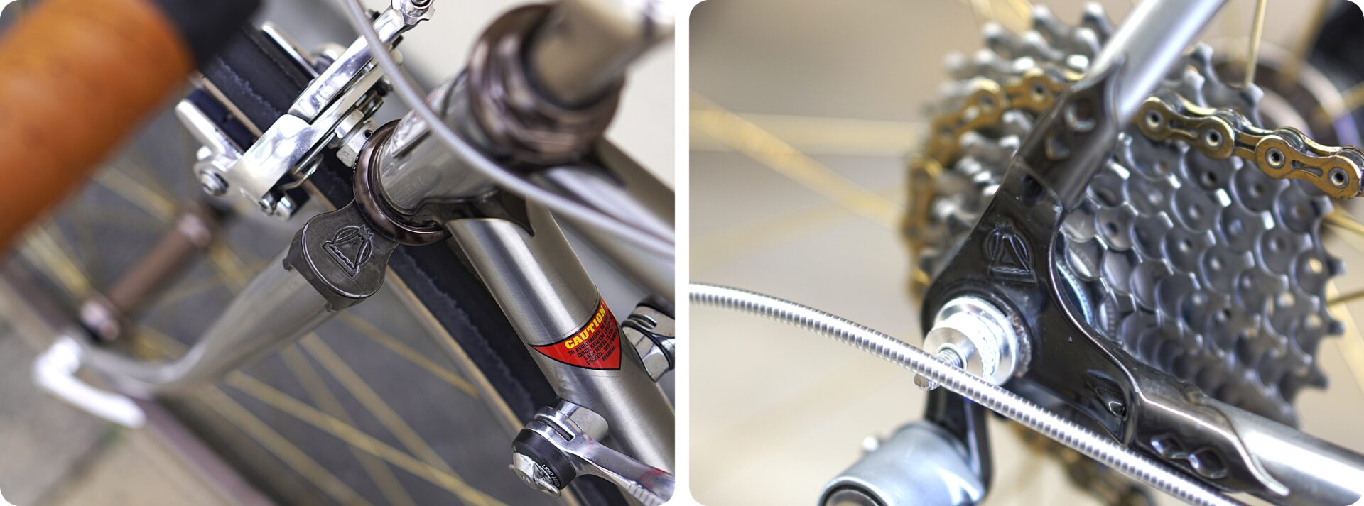 フォーククラウン、ラグ加工、塗装(RAW=素地+クリア)仕様など、クラシックロード好きにはたまらないディテールが盛り込まれています。