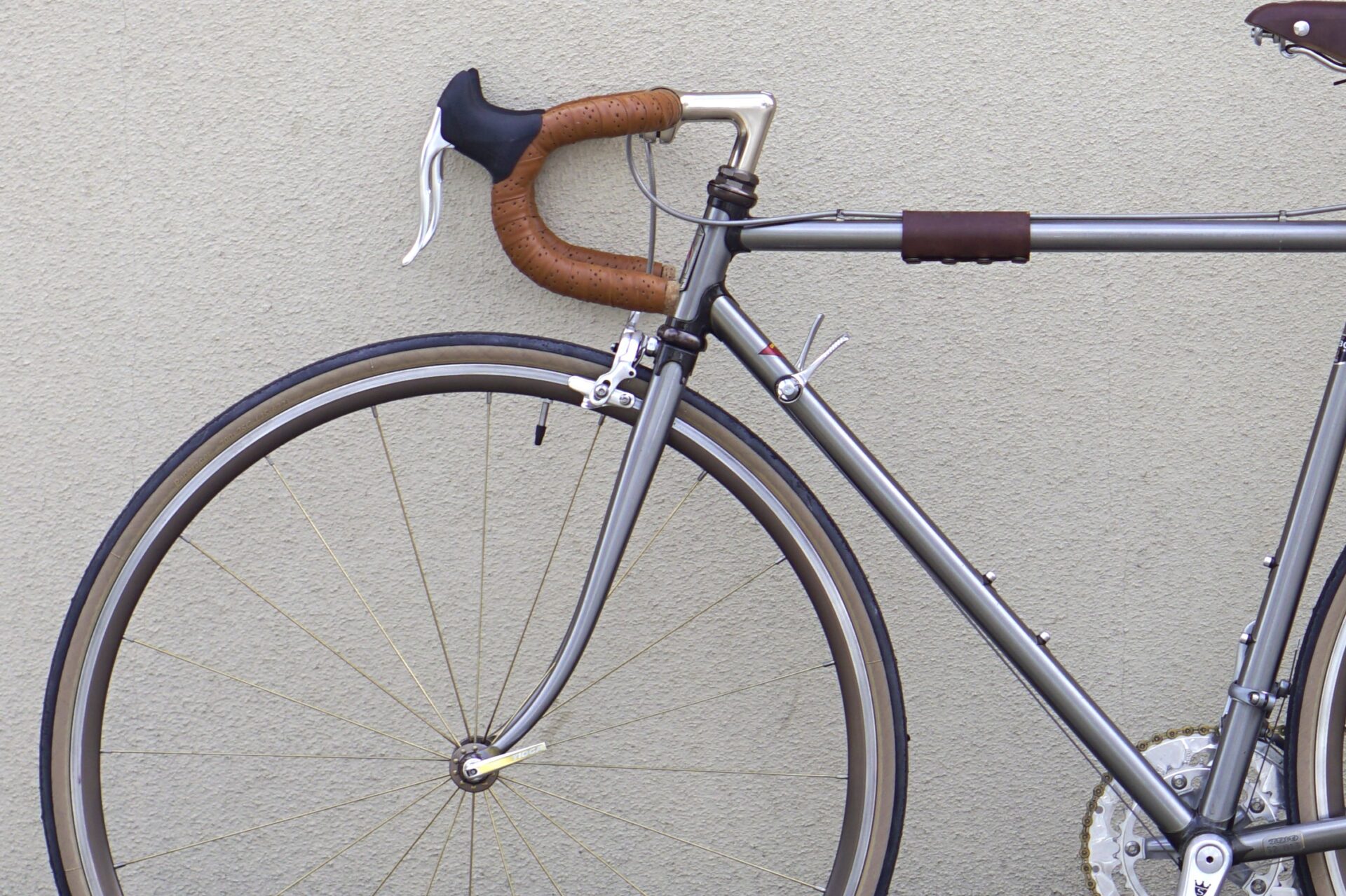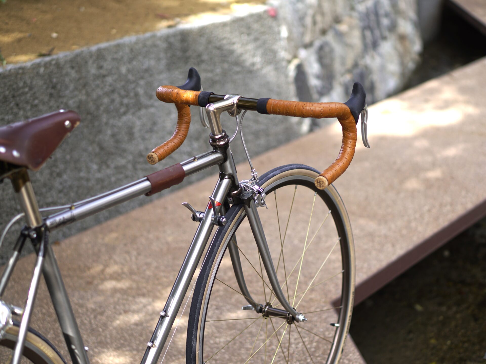 因みにブレーキレバーは、当時上位にあった軽量仕様のShimano BL-R600、バーテープは再生にあたりBTP製で巻きなおしております。