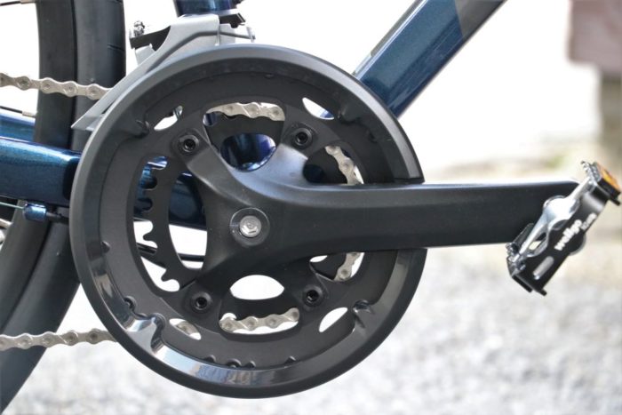 変速機周辺では、Shimano ALTUS(2x9SPEED)が採用。長く愛用が出来る事や日本全国で殆どの自転車屋さんが修理が出来る安心感。