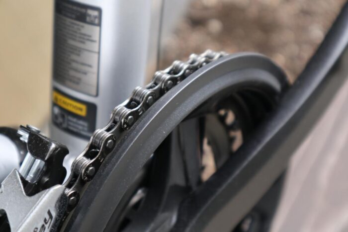 クランクにはバッシュガードが付属しているため、パンツの裾の巻き込みや汚れ移りを防止できて地味に嬉しいポイント。