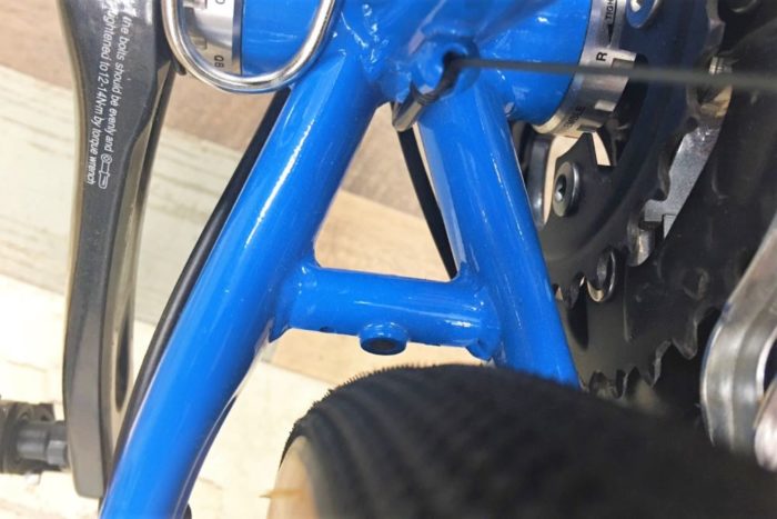 ダブルバテッド成型が採用されたクロモリフレームは、丈夫さと粘りのある乗り味が特徴的。