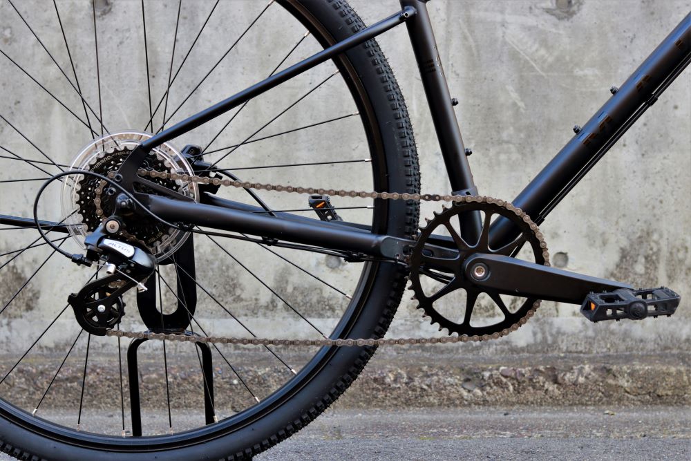 MUIRWOODS29はクロスバイクでも比較的多い3×8では無く、1×8ととてもシンプルなドライブ構成。
