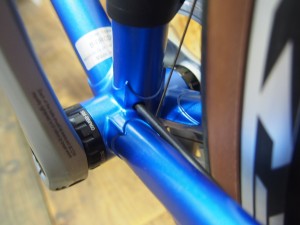 クロモリフレームならではな細身のシルエットが美しい。