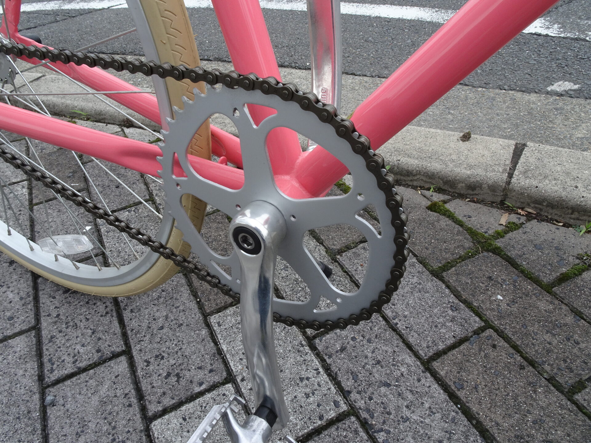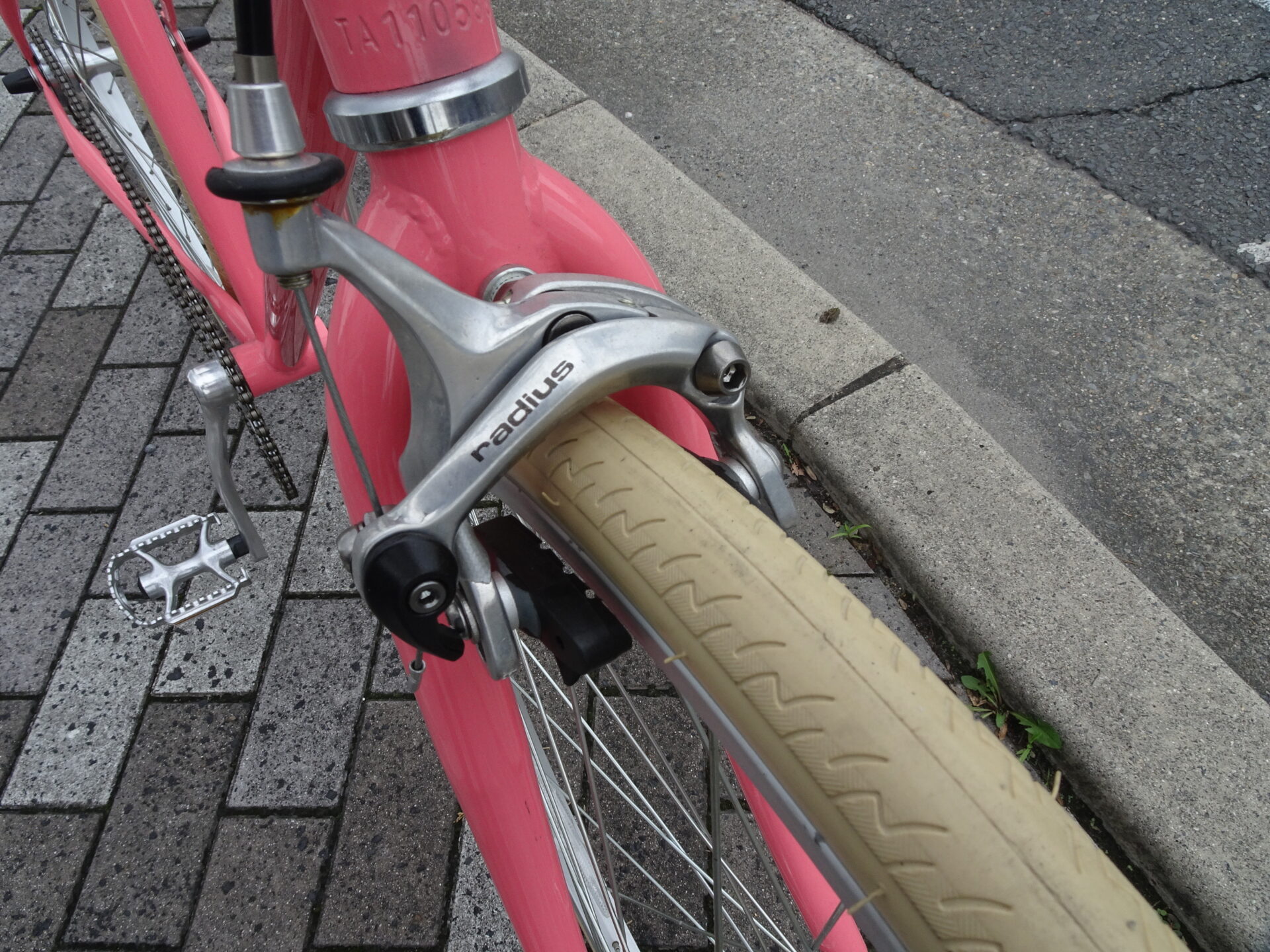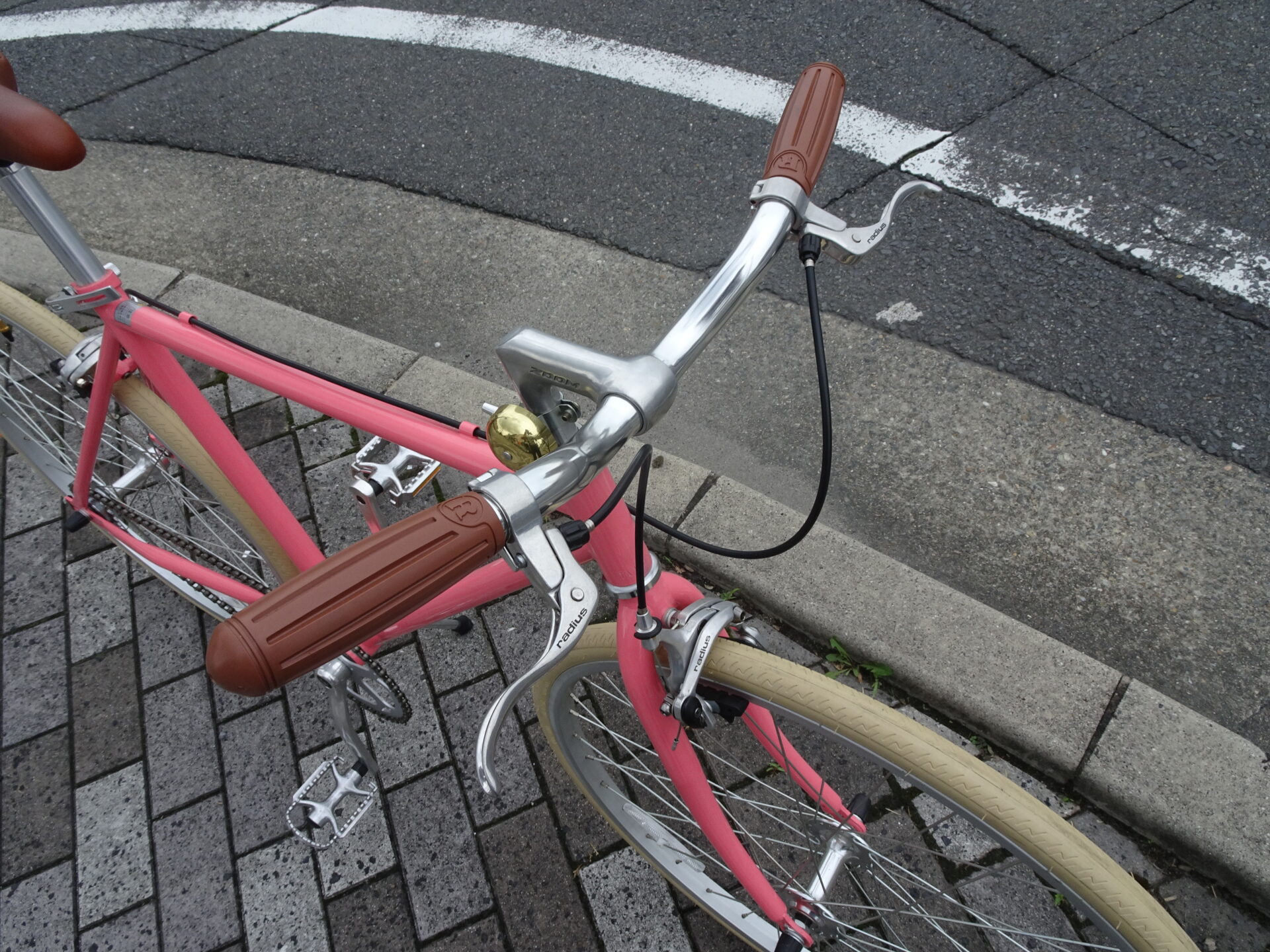 ピンクのフレームにアイボリーのタイヤを合わせているので