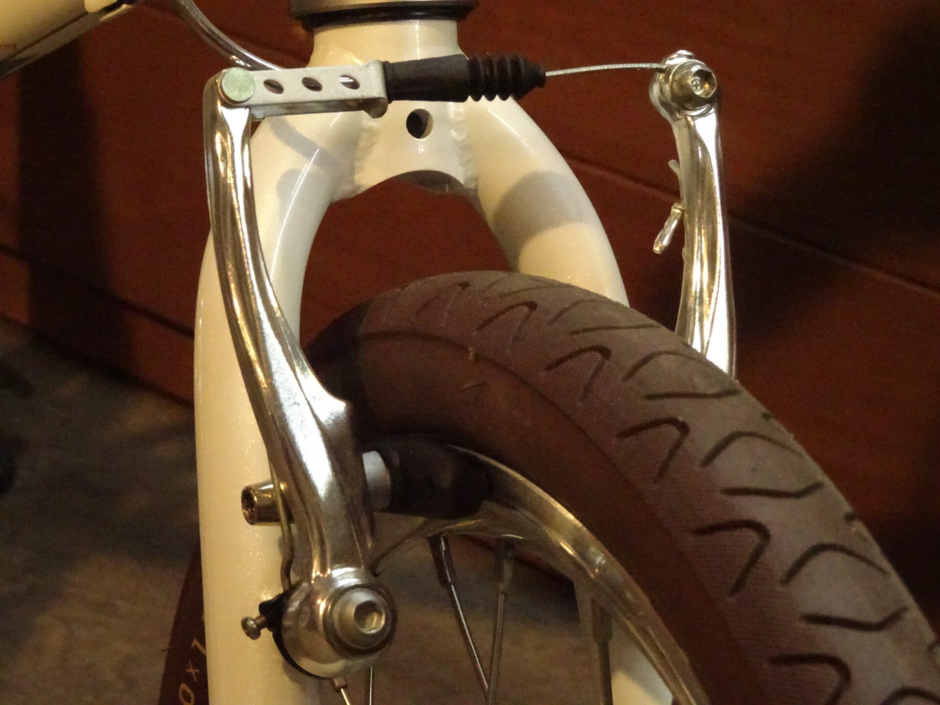 ブレーキシステムは前後共にVブレーキ。小さな力でしっかり止まるのはVブレーキだからこそ。しっかり漕げてスピードも出すことが出来るこの自転車にピッタリなブレーキシステムです。