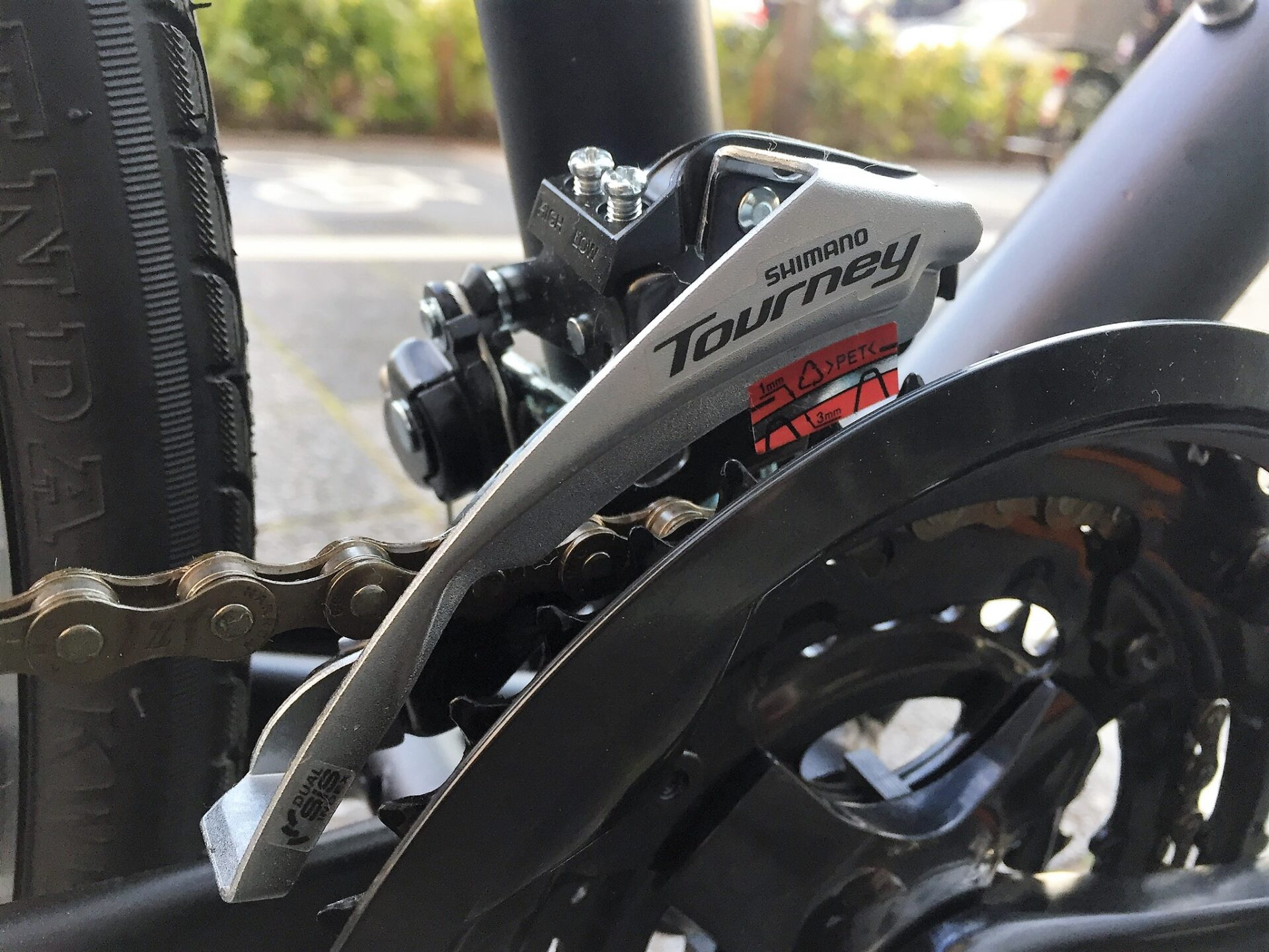 VブレーキはPROMAX、ギアクランクはノンメーカーといい具合にコストバランスよく、それでいてディレーラーはShimano Tourneyと上々のバランス。