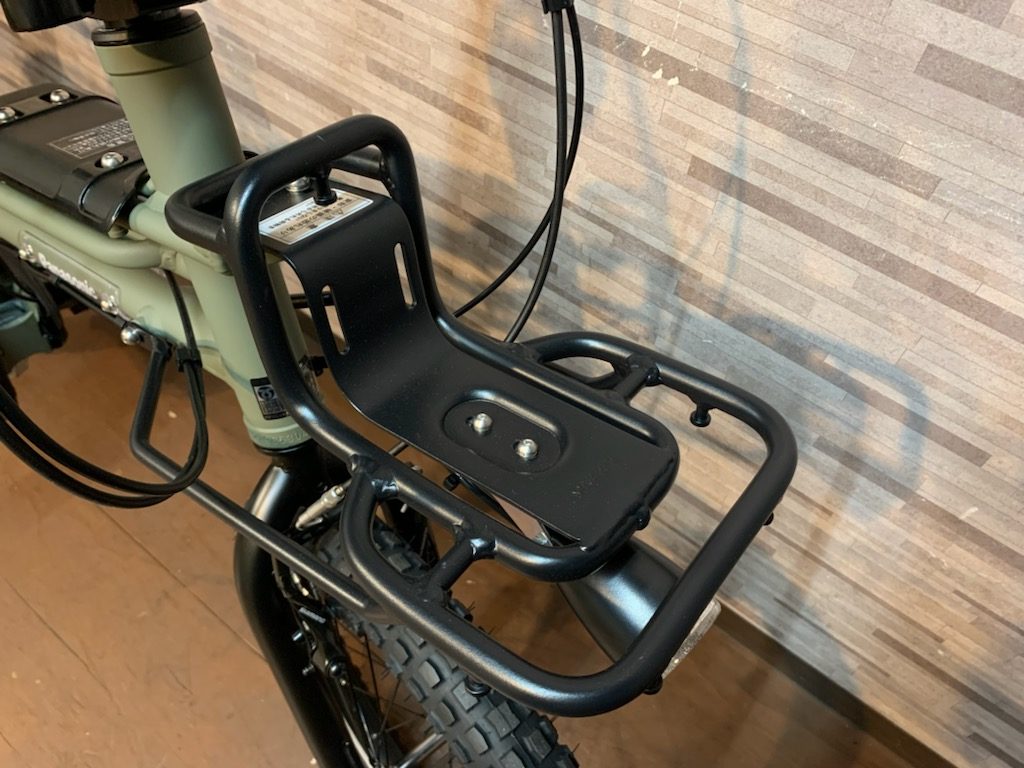 前後にアルミ製キャリアさらにフレームキャリアが標準装備され、フロントは最大積載量2㎏。リアは10㎏。フレームは1㎏。キャリアにロープかけ用フックが付いているのでしっかり固定が可能。ちょっとした荷物を括り付けて運べます。(チャイルドシート取付不可)