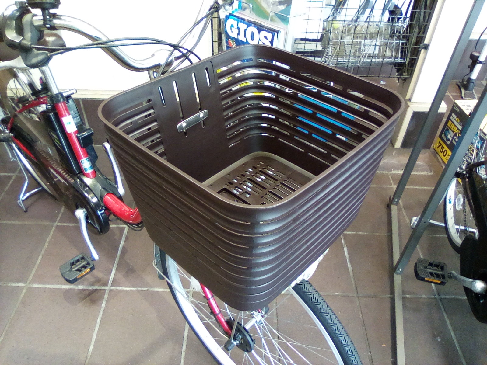 割れたり曲がったりしにくい樹脂カゴはトイレットペーパーやティッシュの箱がすっぽり入る大きさです。[サイズは高さ約240×奥行約350×幅約390mm]今回は昨年か新車に採用されているこのカゴを付けてみました!スリットは入っていますがカゴの中身が見えにくいのも引ったくり予防になっていい所です☆