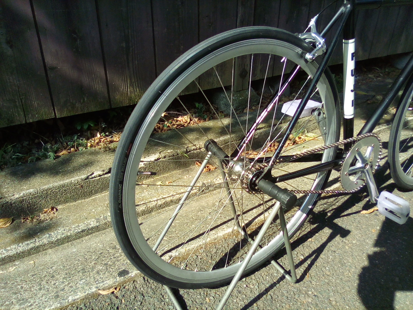 ホイールはセミディープリムです細身のフレームによく合ってカッコイイですよね!。タイヤは700*25Cのセミスリックタイヤをはいていますグリップ性がよく爽快に走ってくれます。