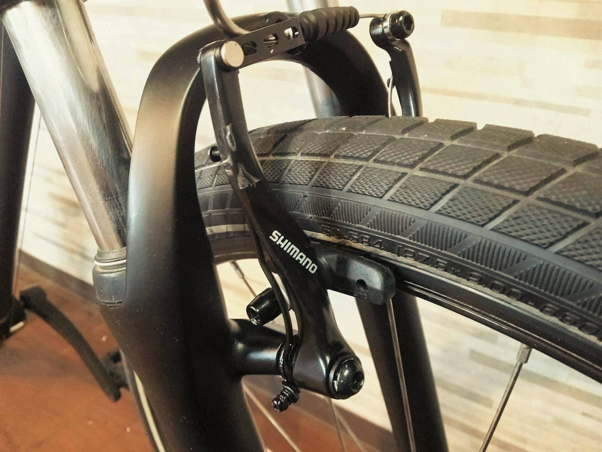 こちらは前後ともにSHIMANO製のBR-T4000に交換しており軽いタッチでブレーキを掛ける事が出