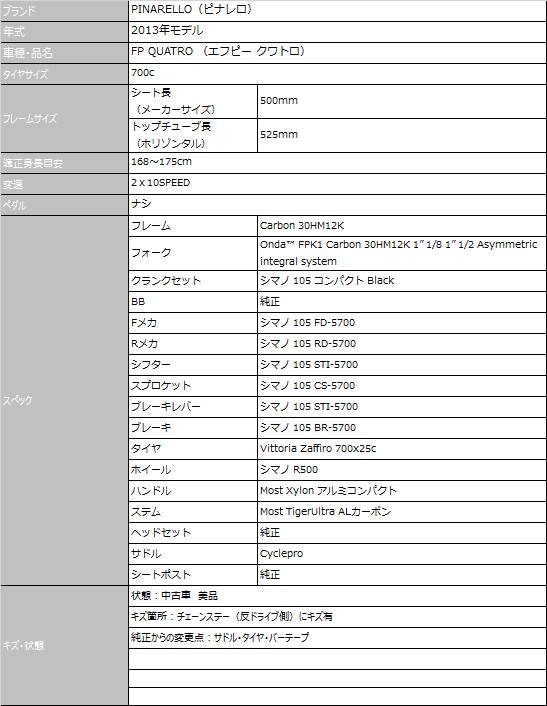 【中古】【2013年モデル】PINARELLO(ピナレロ) FP QUATRO (エフピー クワトロ)