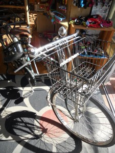 カゴは新聞配達用で、ハンドルバーも特殊肉厚の上にもう一層の補強が入ります。