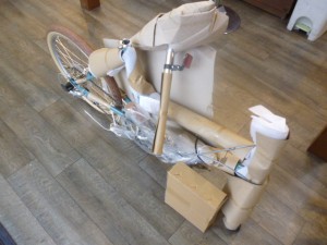 今日は、カワイイ自転車が入荷しておりますのでセッセと組み付けをしたいと思います。