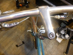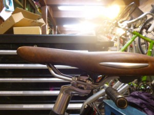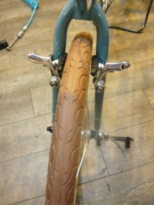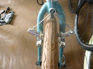 皆さんの安全を守るブレーキを調整します。カンチブレーキがオシャレですね~