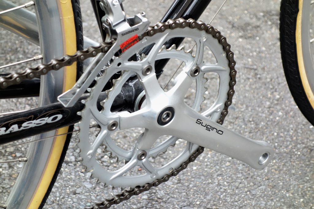 クランクはSuginoのクランクをが採用されており、自転車を漕ぐ際のトルクをしっかりと受け止めて前に進むための推進力に変えてくれます。