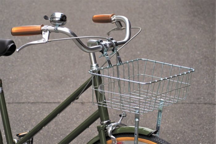 出来る限り自転車の雰囲気を壊さないように小さめのカゴを取り付けています。
