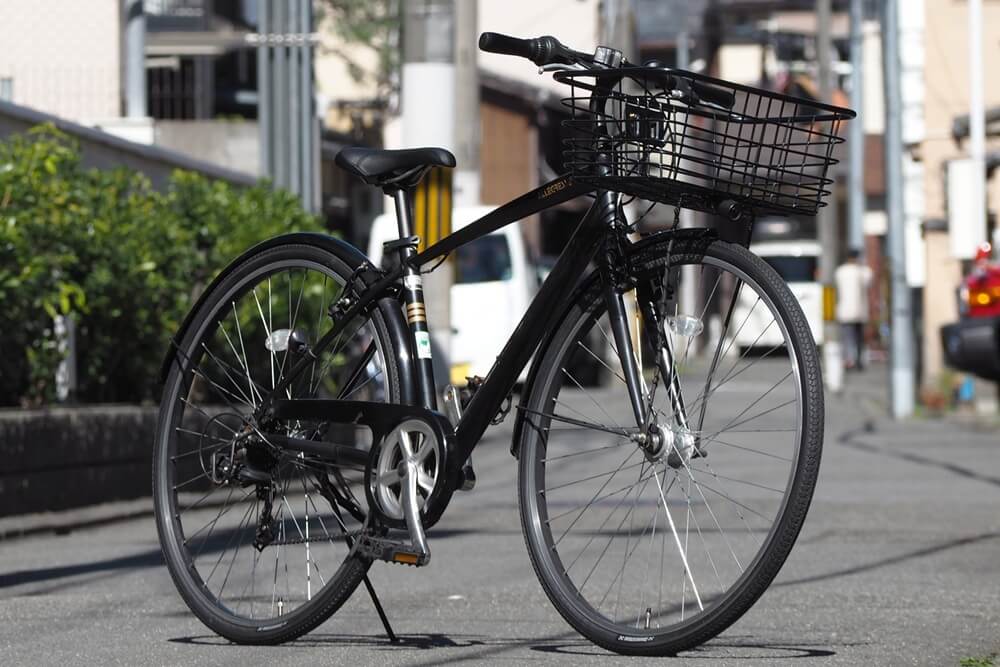 27インチシティータイプの中古自転車!7段変速仕様と充電要らずのオートライト、そして制動力に優れた前後Vブレーキを採用しており、高い制動力でスピードコントロールも簡単でしっかりと止まれます◎通勤・通学や京都の街中を走り回るのにぴったりです!車体も綺麗で比較的状態も良く、買い物や通勤通学に便利な大きなカゴに交換しています。沢山のパーツを交換し、しっかり整備をしているので、これからの良き相棒になること間違いなし!