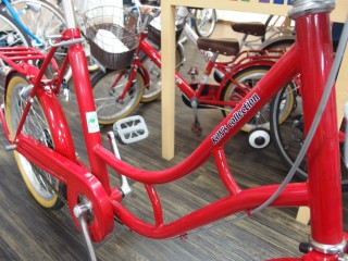 コチラの自転車、赤いフレームがとってもキュートですね!