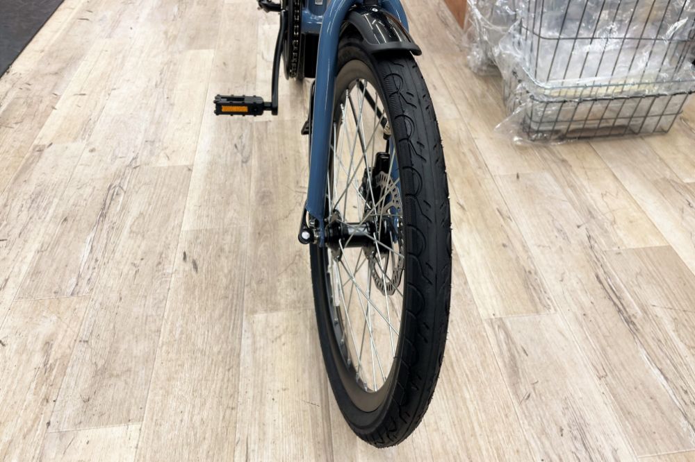 タイヤは一般的なKENDAタイヤ。街乗りに適したスタンダードな20×1.75のサイズ感。太すぎず、細くもなく、段差も安心。汎用規格なので修理・カスタムは、どこの自転車店でも対応できますね。