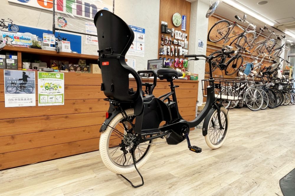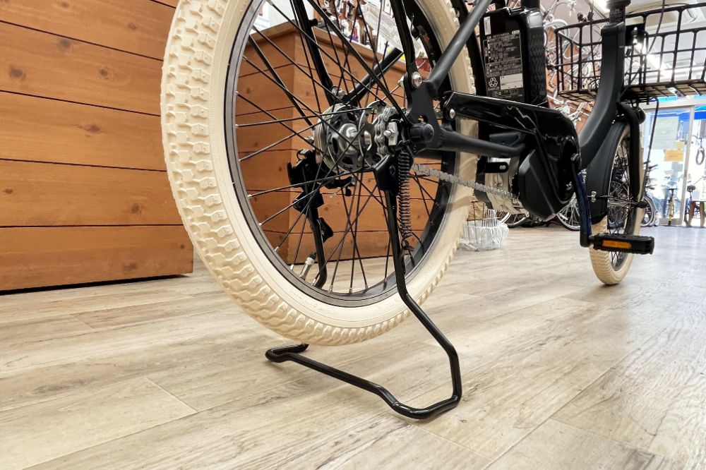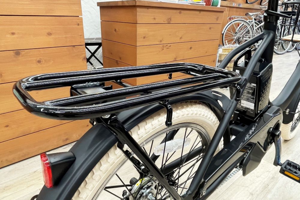 メーカー純正オプションのリア荷台(5,450円、税込)も装着。安定性バツグンの両立スタンド(3,200円、税込)も用意されています。リアチャイルドシート対応なので、パパママ仕様もOK!
