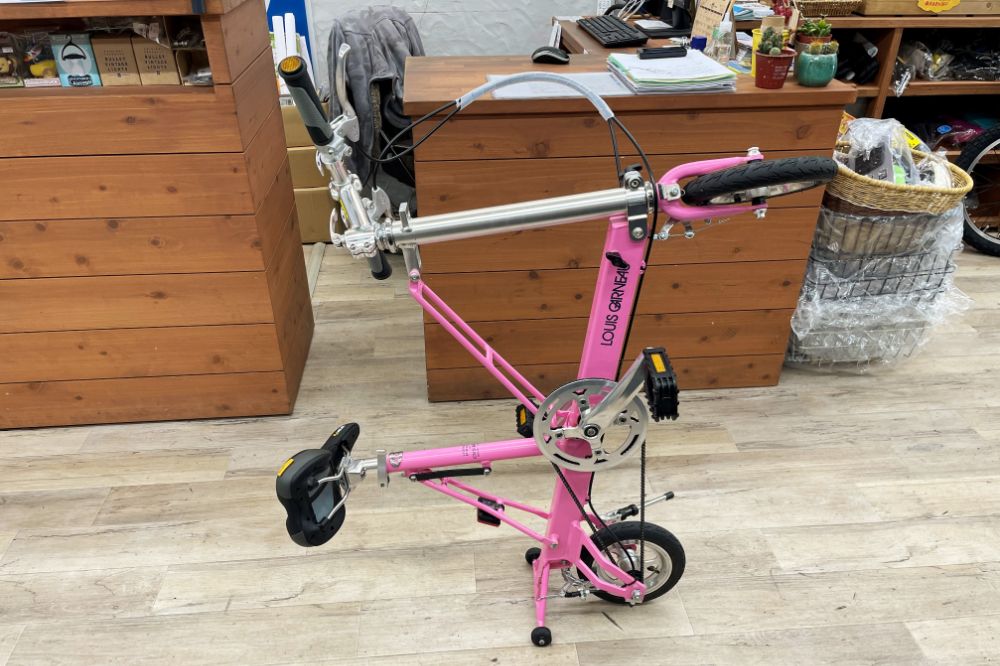 今回ご紹介するのは、とても珍しい8インチの折りたたみ極小径車、LOUIS GARNEAU(ルイガノ)・LGS-CMの中古車です。今や廃番モデルとなり、入手困難な自転車なんですよ~!保管状態がとても良く超美品な1台。けん引用のミニ車輪が後部に付いているので、折りたたんだ後はそのままキャリーカートのように移動できるんです。重量はわずか8kg。実用レベルのモバイル機能を備えた、マニア垂涎のLGS-CM~♪