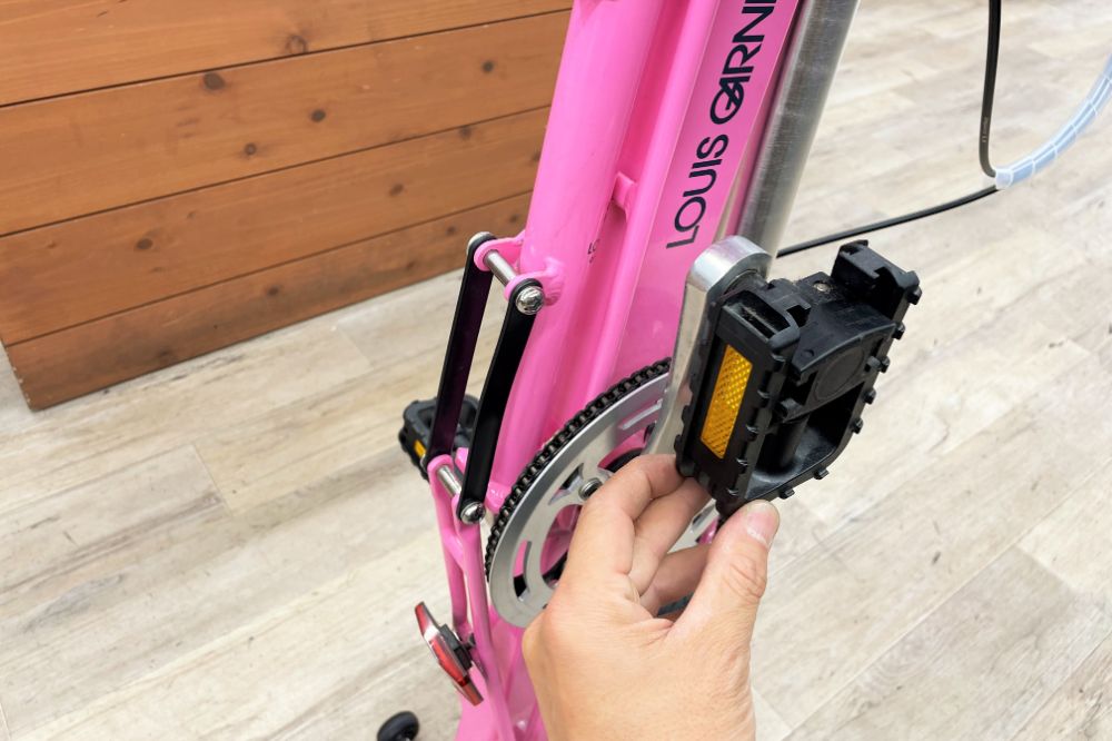 折りたたみ自転車の定番と言えば、「ペダル」=「可変式」。折りたたむことができます。車載時や輪行時、薄くなってくれるととても助かりますよね。あの出っ張りが少なくなり…。