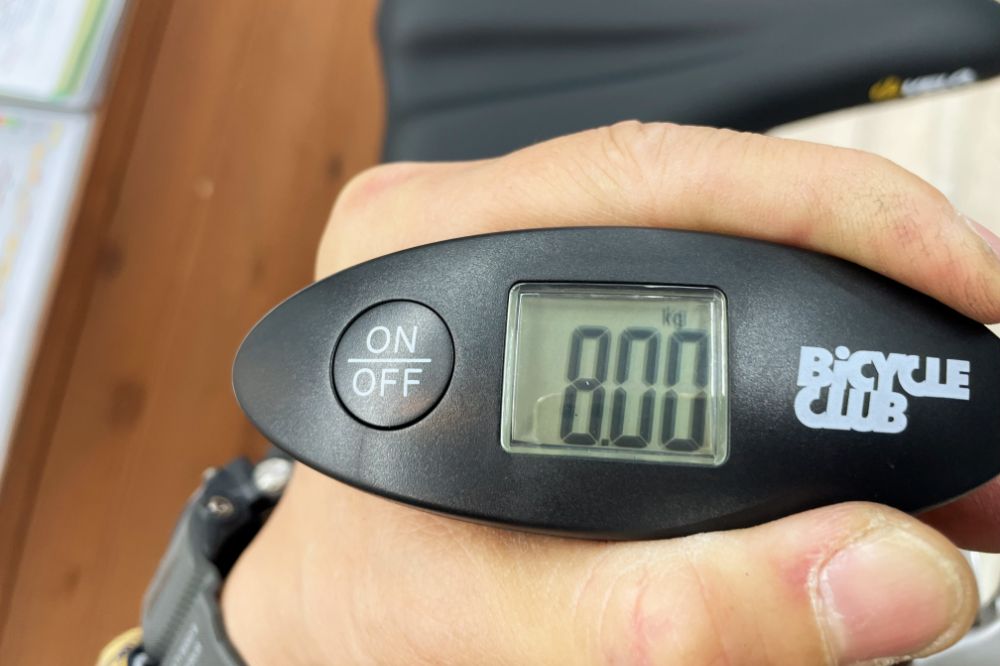 重さも実測してみました。メーカースペックと同じ8.0kgくらい。軽量を売りとする高級ロードバイクと同じレベルの軽さ。もちろん折りたたみ自転車の中でも最軽量クラスのポテンシャル。13年前のモデルでこの軽量性。恐るべしルイガノ、恐るべしLGS-CM。