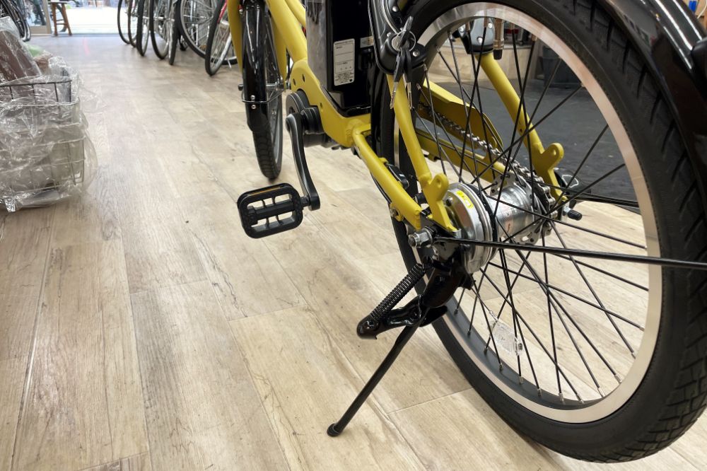 ガッチリタイプの両足スタンド。荷物をたくさん積んでも安定感◎リアキャリアもあるので、前後に分けて荷物を運ぶこともOKです!